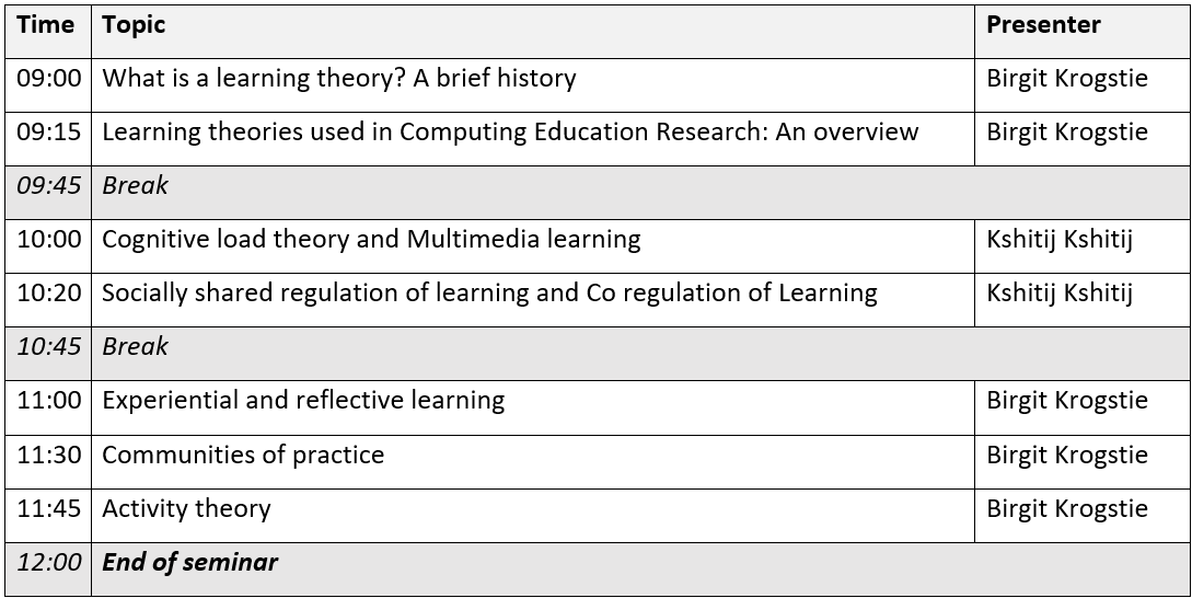 Hybrid seminar on Applying Learning Theories in Computing Education Research, Tue. 24.3.