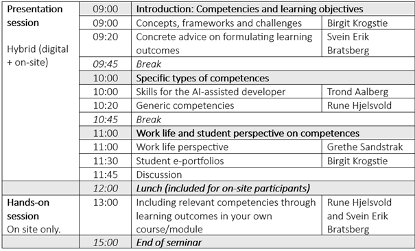 For those interested in discussing competencies related to their own courses, we offer feedback and guidance in the afternoon session, which is on-site only.
