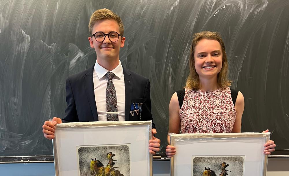 Sondre received the prize for the best Master of Technology (teknologimaster). Johanne received the prize for best Master of Science (master i fysikk). The advisors have been professors Asle Sudbø (Sondre) and Jacob Linder (Johanne).