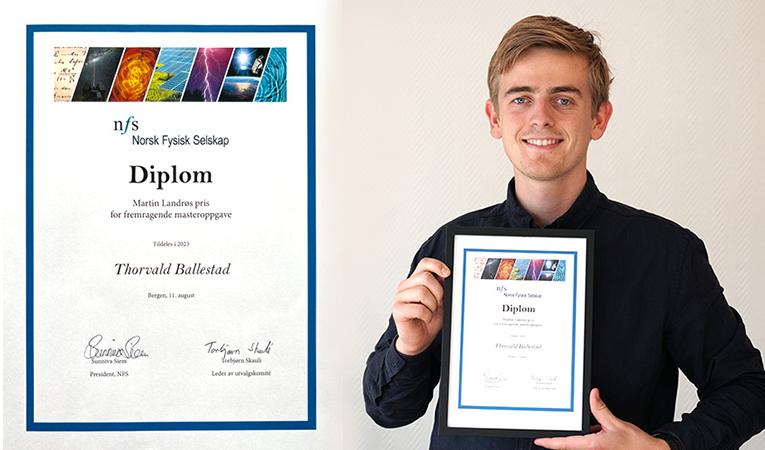 Award from Norsk Fysisk Selskap to Thorvald Ballestad for an Excellent Master's Thesis in Physics