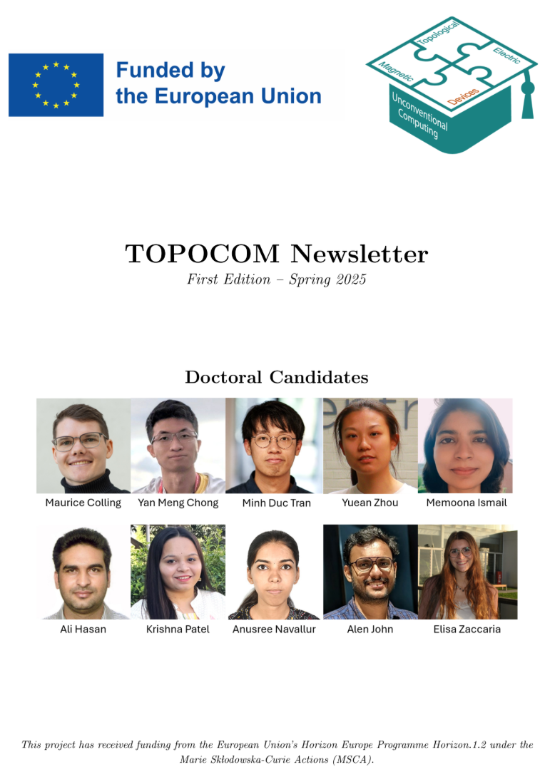 The TOPOCOM network spans the whole range from fundamental physics and applied materials science - linking both experimental and theoretical aspects - to industrial-scale production and evaluation. The scientific part (“Training through Research”) is complemented by advanced transferable business and cultural skills training (“Training for Life”), providing Europe with a unique training programme at the forefront in unconventional computing based on electric and magnetic solitons.