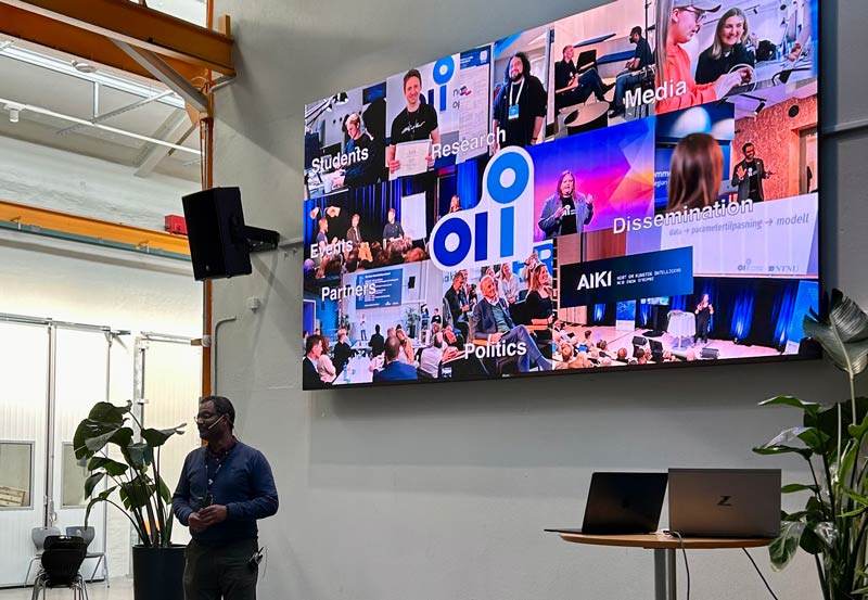 The event was held at at the Natural Science Library (Realfagsbiblioteket, Gløshaugen) in Trondheim, drawing approximately 90 attendees in person as weel as well over 400 unique viewers online! The program included talks about the Norwegian language model with Lemei Zhang from NorwAI, AI and ethical challenges, and AI in student projects from Cogito NTNU. Among the speakers were NAIL core team members Gunnar Tufte, Torbjørn Svendsen, and John Krogstie, both speaking on AI and sustainability. The day was fantastically led by Daniel Rosmæl Skauge from our student organisation BRAIN NTNU.