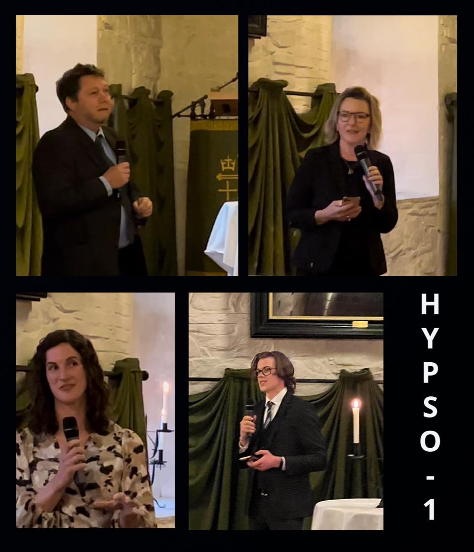 Celebration of HYPSO-1 and time to say some words: Professor Tor Arne Johansen (upper left), Dean Ingrid Schjølberg (upper right), PhD Evelyn Honore-Livermore (down left) and master student Simon (down right).