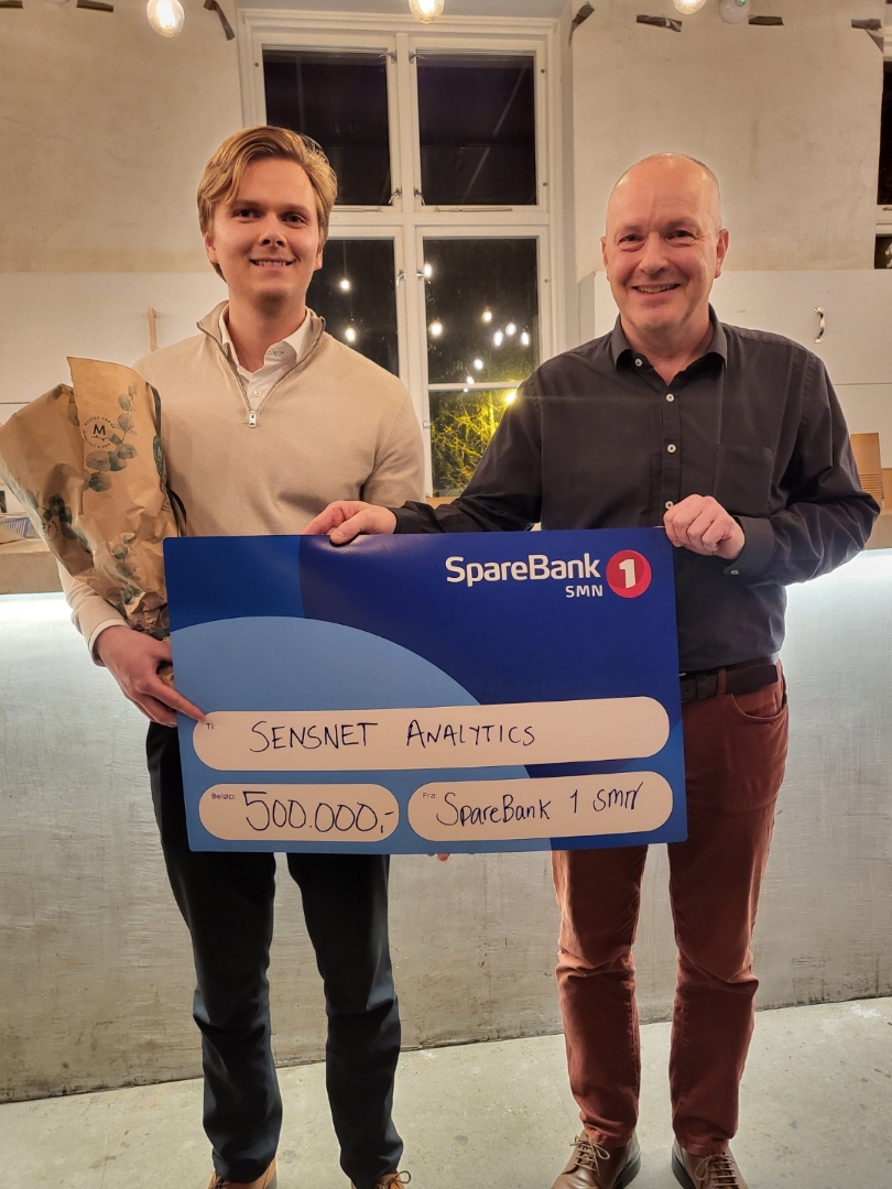 Sensnet Analytics, a spin-off company from CGF, was awarded “Fremtidens Verdiskaper 2024” at the Sparebank1 event “Næringsdriv”. This prestigious recognition comes with a prize of 500,000 NOK and is meant as an inspiration for early-stage startups in Mid-Norway. Their five-minute pitch, delivered by Jan Langhammer and Robin Rørstadbotnen, demonstrated innovative examples of using Distributed Acoustic Sensing for power companies and highlighted other potential purposes.