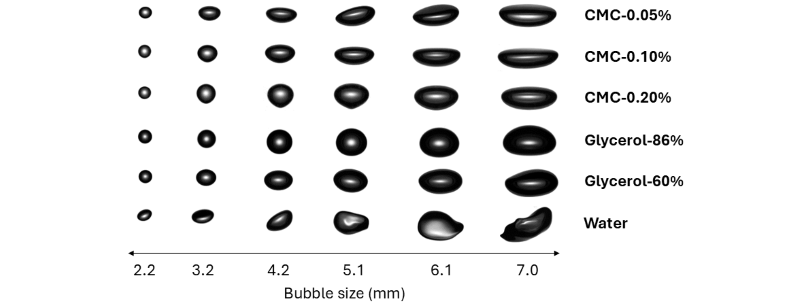 Newtonian and non-Newtonian fluids exhibit distinct rheological characteristics that significantly influence gas–liquid interactions. While Newtonian fluids maintain a constant viscosity regardless of applied shear stress, non-Newtonian fluids are characterized by shear-dependent viscosity. In multiphase systems involving non-Newtonian liquids, dispersed bubbles may generate shear forces which can alter the viscosity around the bubble and eventually influence the bubble evolution. This complexity arises when the bubbles deform or encounter instability. To better characterize these phenomena, we aim to further examine the effect of liquid rheology, including shear-thinning inelastic and viscoelastic rheology, on bubble dynamics and mass transfer.