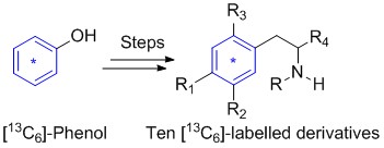 - M. Karlsen, H. L Liu, J. E. Johansen, and B. H Hoff. Synthesis of [13C6]-labelled phenethylamine derivatives for drug quantification in biological samples, J. Lab.Comp. Radiopharm. 57 (2014) 378-387.