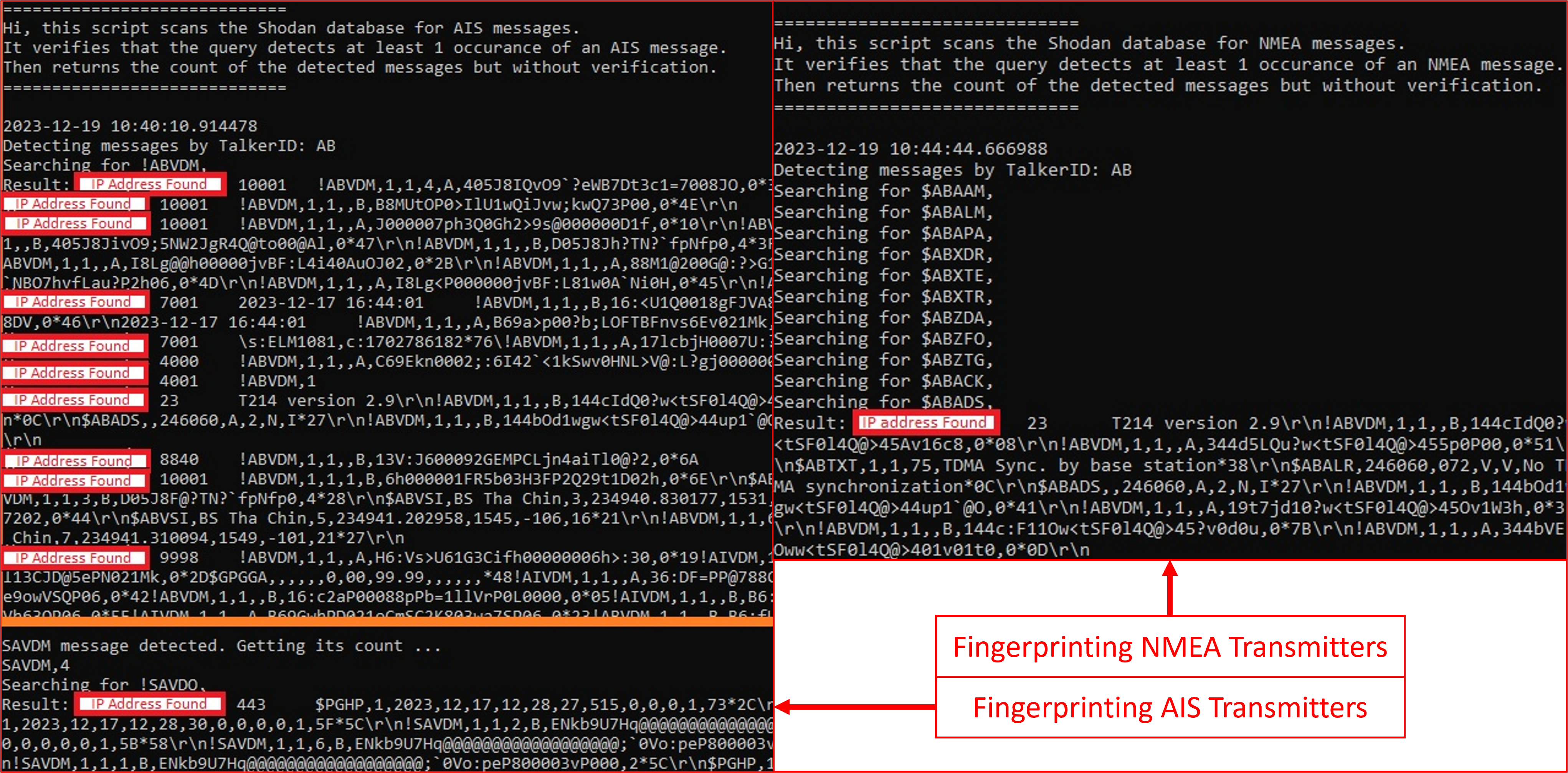 The lab facilitates several reconnaissance methods against cyber-physical systems. This includes a variety of open-source tools as well as customized tools that have been developed specifically for maritime systems. An example of such is the utilization of Shodan for detecting maritime devices broadcasting NMEA or AIS devices