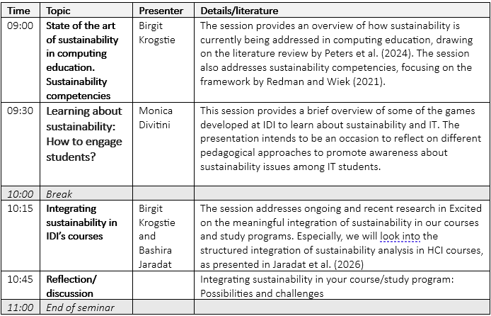 Centre for Excellent IT Education, Excited, aims at bringing Norway in the forefront of innovative IT education and making IT an increasingly more attractive study choice for young people. These webinars aim at creating arenas for discussions and reflection among the teaching staff. Each webinar will be held in Zoom and include a presentation and a Q&A session.