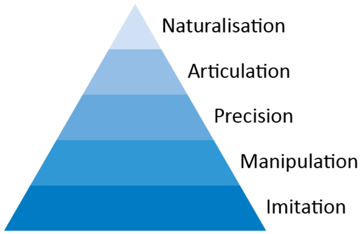 These are also recognised in Krathwohl’s overview of the 2001 revision of the original taxonomy. The Simpson and Harrow psychomotor taxonomies are especially useful for describing the development of the relationship between cognition and physical movement from birth through to adulthood, or for developing skills within the performing arts and sports. The psychomotor taxonomy by Dave is perhaps more transferable across disciplines as there is less emphasis on movement, and rather describes progressive degrees of competence in performative actions.