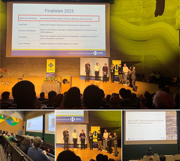 DPG Spring Meeting of the Condensed Matter Section in Dresden with Dennis' plenary talk on "Ferroelectric and multiferroic domain walls for nanotechnology" and several talks about the lastest results from our team.