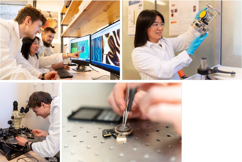 PEEM and LEEM: In addition to the different microscopy techniques available in-house, we regularly go on beamtime, using cathode-lense microscopes at synchrotron sources around the world, (such as Diamond Light Source, England; BESSY II, Germany; Advanced Light Source, USA). Here, we use experimental techniques such as photoemission electron microscopy (PEEM) and low-energy electron emission microscopy (LEEM) to perform, for example, local spectroscopy experiments with nanoscale spatial precision and high-resolution potential mapping.