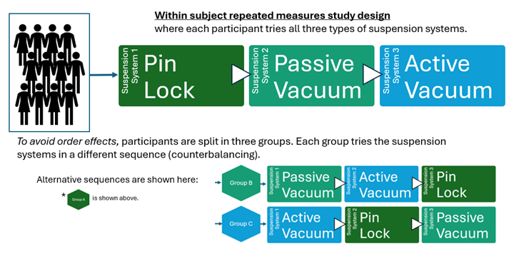 These tasks are designed to capture how each suspension system influences socket-leg motion, gait performance, and user comfort. Motion is recorded using a 3D motion capture system, and outcomes are supported by gait metrics and questionnaires.
