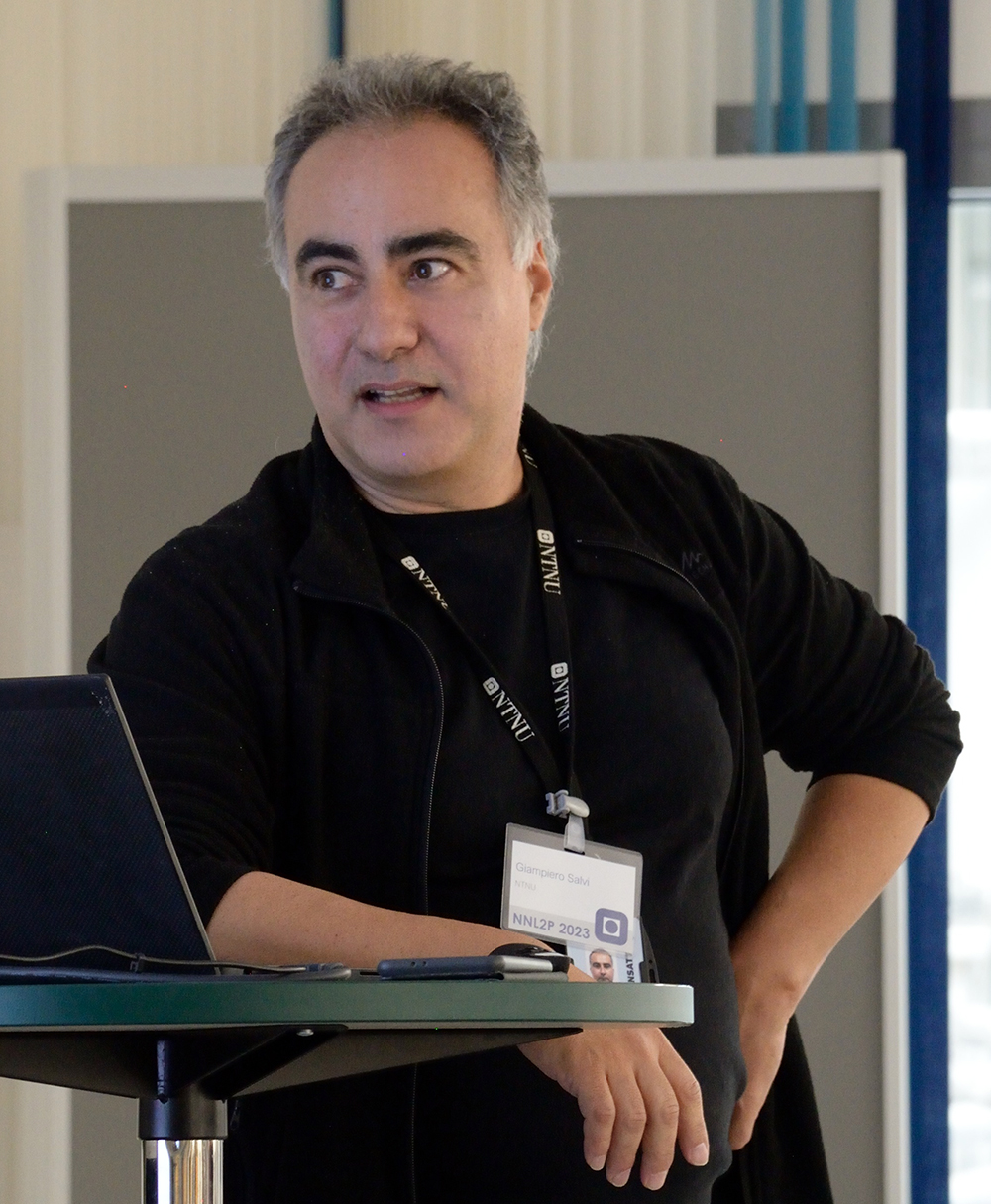 Here’s a group photo of the conference. Due to travel problems and covid, three people participated online and are not shown: Elisabeth Zetterholm (who also presented her contribution online), Axel Tegnered, and Jacques Koreman. And of course, present at the conference but on the other side of the camera lens: Wim van Dommelen, photographer, phonetician, and last-minute co-organizer.
