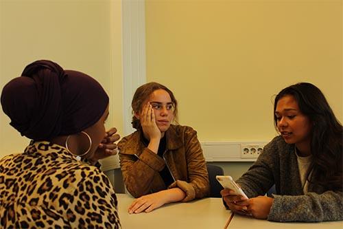 Mina: Nei, men det er deres hjem også. Jeg kan alltid være hjemme når de har selskap. Hvorfor skal de være borte når jeg har venner på besøk? Det vil de ikke forstå. Uff, dette er vanskelig! Det er lettere å ha to liv – ett hjemme og et annet sammen med vennene mine.