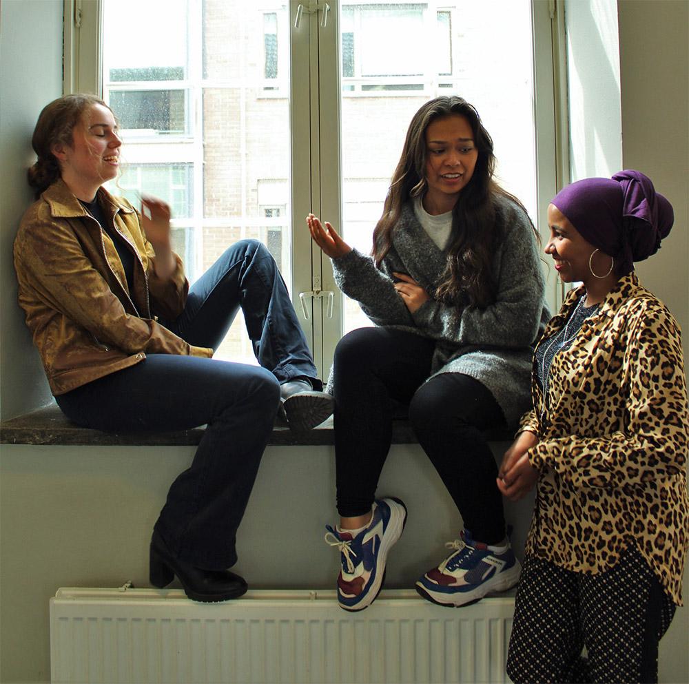 Iman og Mina satt i kantina på skolen og diskuterte arrangerte ekteskap. Ingvild satt og hørte på dem.