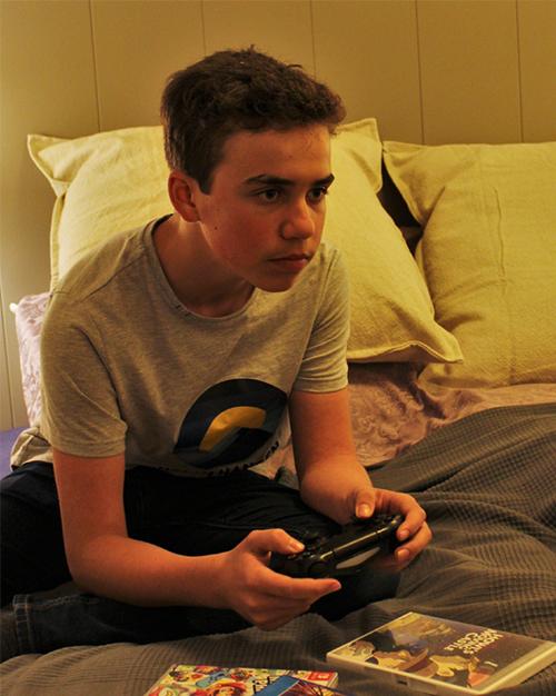 Hoda venter på Sami. Han kommer hjem midt på dagen. De leker litt sammen. Så vil Sami spille dataspill.