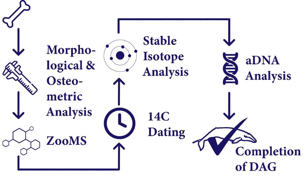 DAG will apply a combination of interdisciplinary, step-by-step, methods. First is an assessment of historical sources that mention grey whales, to evaluate where and when humans interacted with the species in the past, and whether active whaling was conducted. Subsequently, a zooarchaeological assessment of cetacean bones present in the archaeological record of northern and western Europe will be conducted. Identification to the species level will be attempted wherever possible, based on morphological and osteometric analyses. However, since whale bones are hard to identify to the species level using these traditional zooarchaeological methods, subsequent biomolecular identification is also needed.