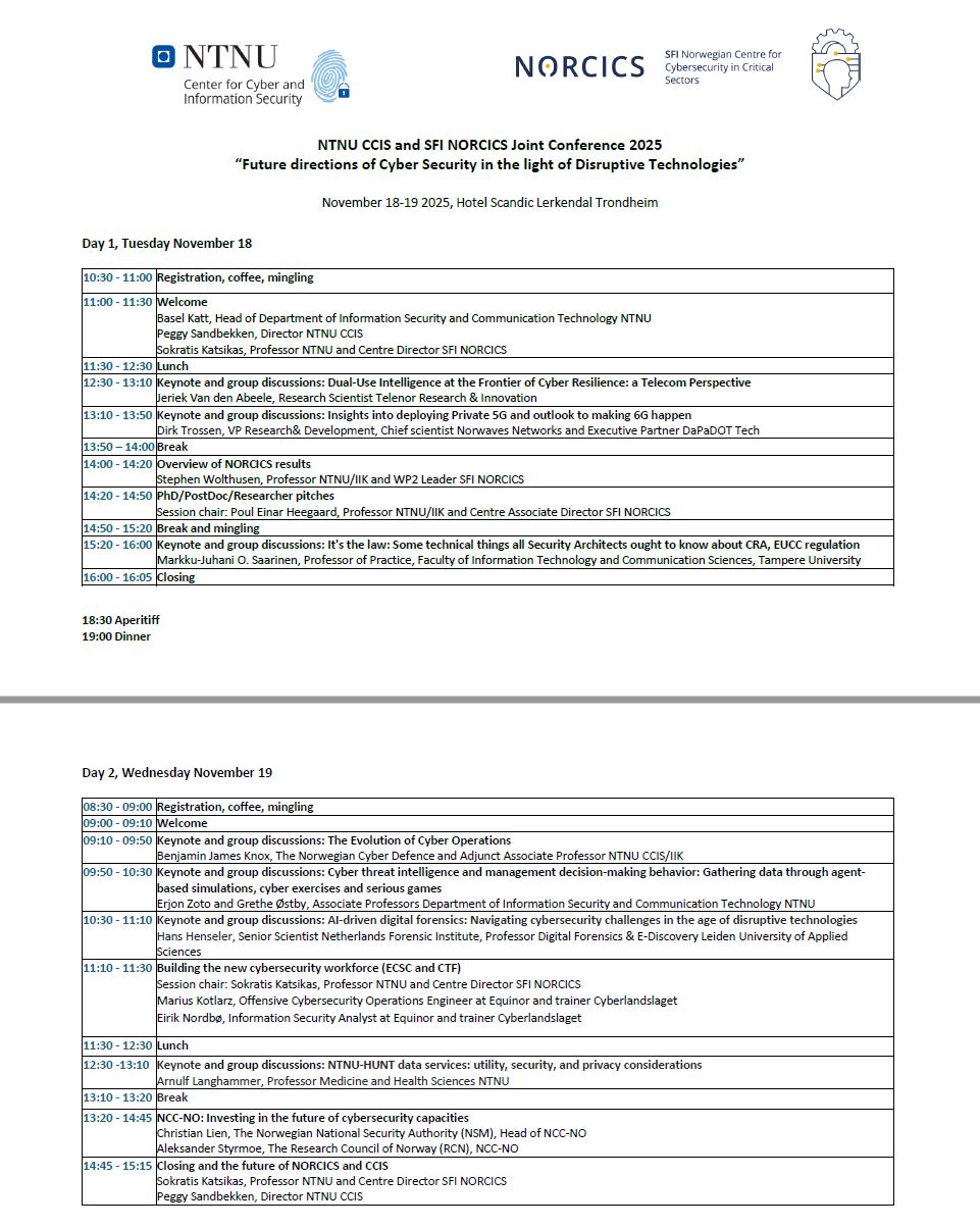 NTNU CCIS and SFI NORCICS Joint Conference Programme 2025