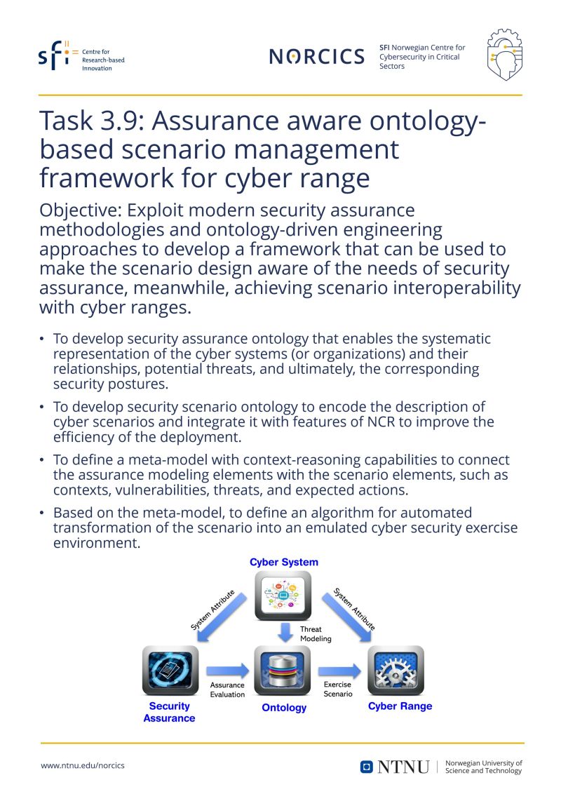T 3.9: Assurance aware ontology-based scenario management framework for cyber range.