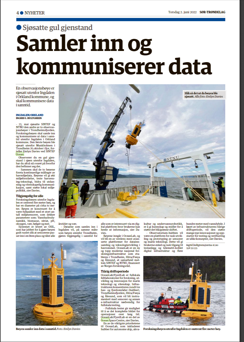 - Trondheim's Marine Observatory: Two new arrivels to look out for this summer (Sintef blog, Aug. 17 2021)