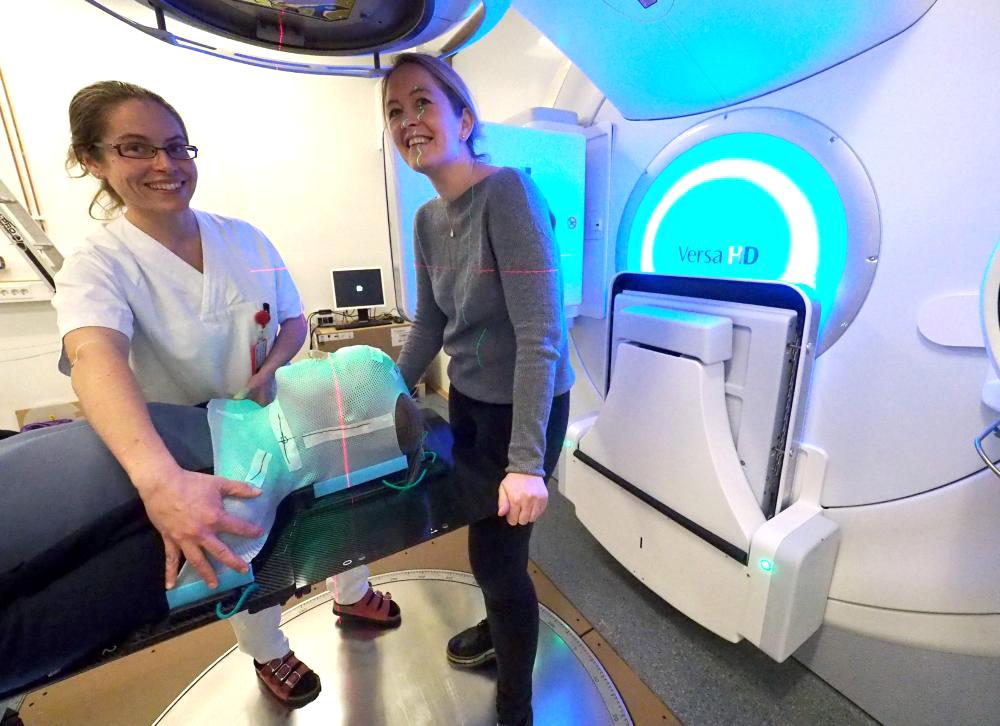 Proton therapy is a technologically advanced treatment modality that uses a beam of high-energy protons to irradiate the tissue. Compared to the conventional photon-based radiotherapy the proton therapy benefits from delivering a more precise radiation dose with lower dose to surrounding critical organs (see figure). In Norway we will soon get two proton therapy centers both for treatment of patients and for research.