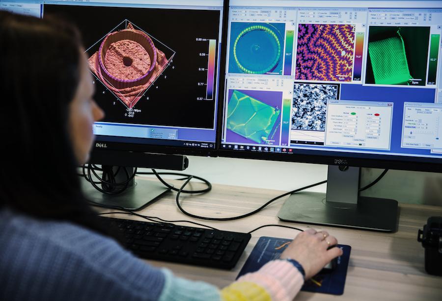 Our research explores functional properties in completely new types of topological spin textures, such as magnetic disclinations and dislocations, and helimagnetic domain walls. By applying state-of-the-art imaging methods, such as magnetic force microscopy, we aim to create fundamental knowledge about the physics of such spin textures: For example, we want to understand their formation process, topology-driven properties, and interactions. Furthermore, we study how electrical currents and magnetic fields control the position and movementof individual spin textures and investigate the dynamical nanoscale response. Ultimately, we want to understand if it is possible to utilize the new degrees of flexibility offered by the different topological spin textures to design next-generation spintronics devices.