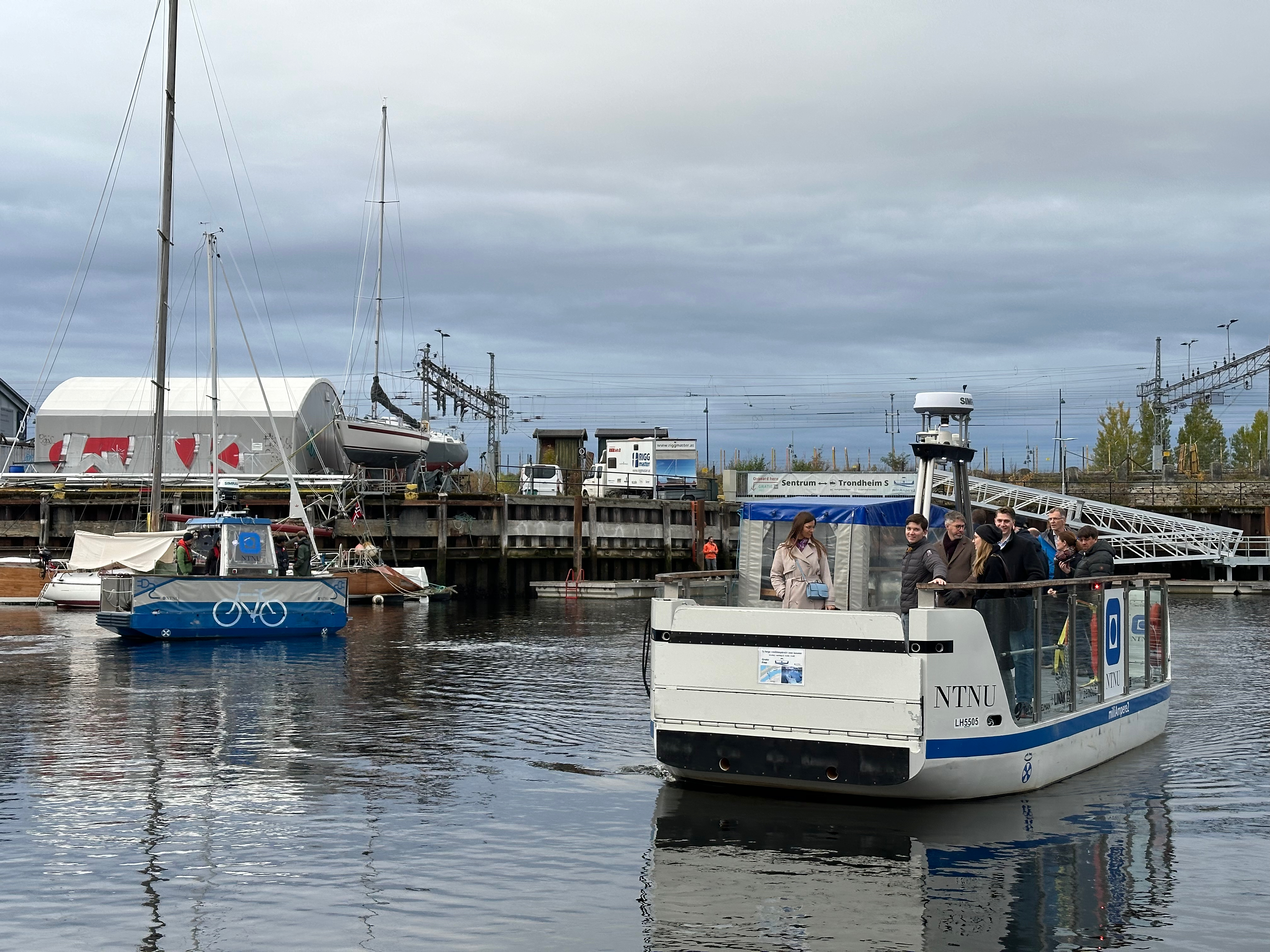 milliAmpere 1 and milliAmpere 2 during the remote operation and autocrossing demonstration at Ravnkloa.Are Jørgensen from DNV presenting. Photos: Ingeborg Guldal/NTNU