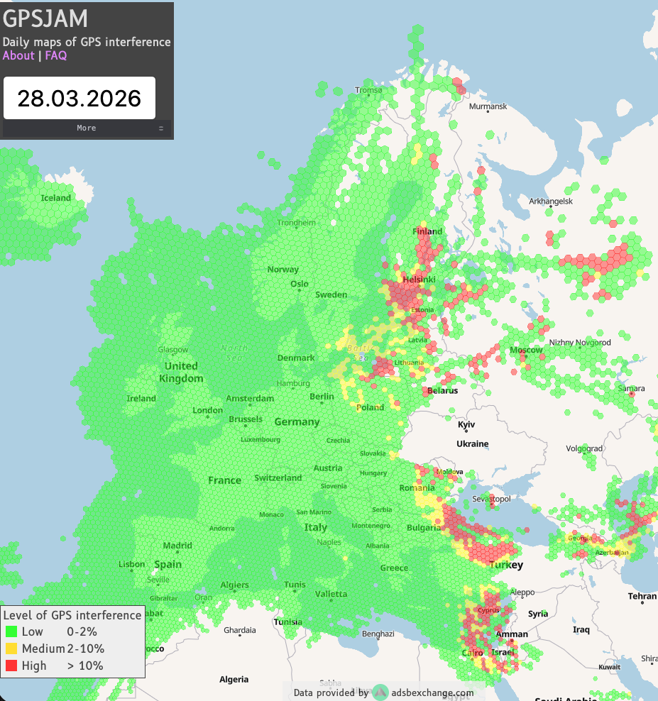 There exists several services providing GNSS interference coverage such as gpsjam.org.