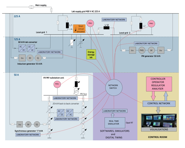 SEL-5702 Synchrowave Operations tool connected to the power network in NSGL as well as real utility network via the SEL-5073 Phasor Data Concentrator (PDC). Platform for PMU data monitoring and trending in terms of voltage and current phasors, frequency, ROCOF, etc. Software features facilitate system-wide visualization and improve situational awareness for grid operators. WAMPC testing platform with real time automation and control (SEL- RTAC)