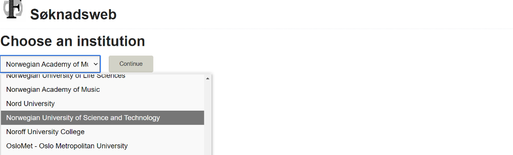 1. Choose the NTNU institution (Norwegian University of Sciencee and Technology: