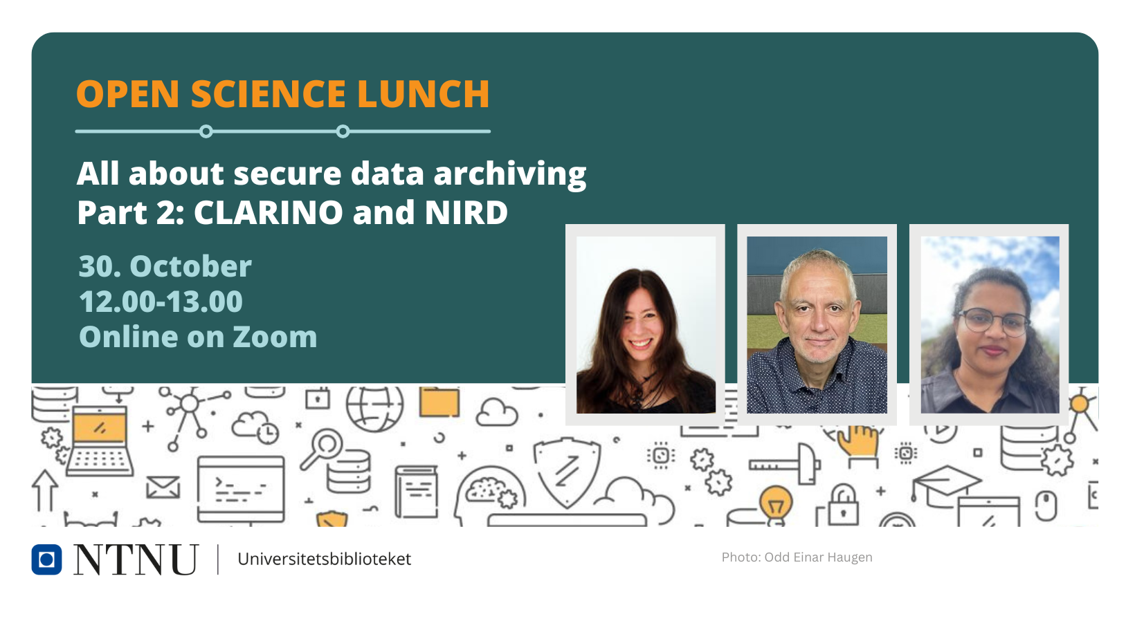 Lots of research data have a high reuse value and should be preserved after the project is finished, but not all of them can be shared openly. Join us for this Open Science Lunch to learn from CLARINO and NIRD RDA about their solutions for archiving data, including data that need restricted access.